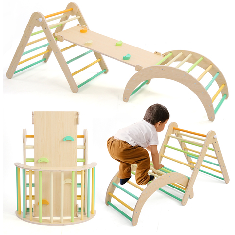 กรอบรูปไม้เล่นสีสันสดใสชุดของเล่นไม้ในยิมป่าเล่นพับได้สำหรับเด็กทารกปีนเขาของเล่นเด็ก
