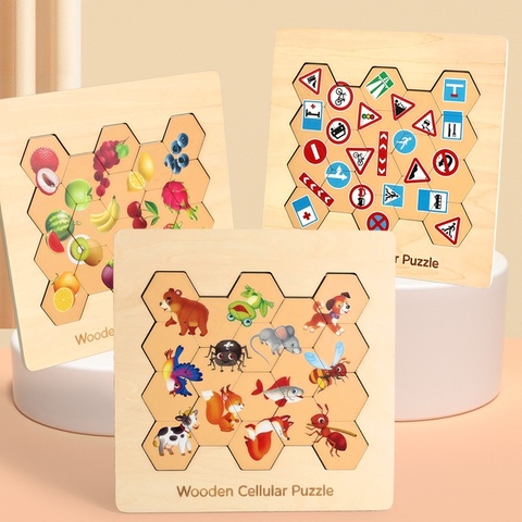 ของเล่นเพื่อการศึกษาตัวต่อรังผึ้งจับคู่รูปเด็กทำจากไม้น่ารัก