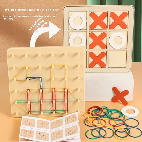 Montessori บอร์ดหมุดทรงเรขาคณิตแบบ2 in 1นิ้วของเล่นเพื่อการศึกษาไม้โมเสคช่วยสอนสำหรับเด็ก